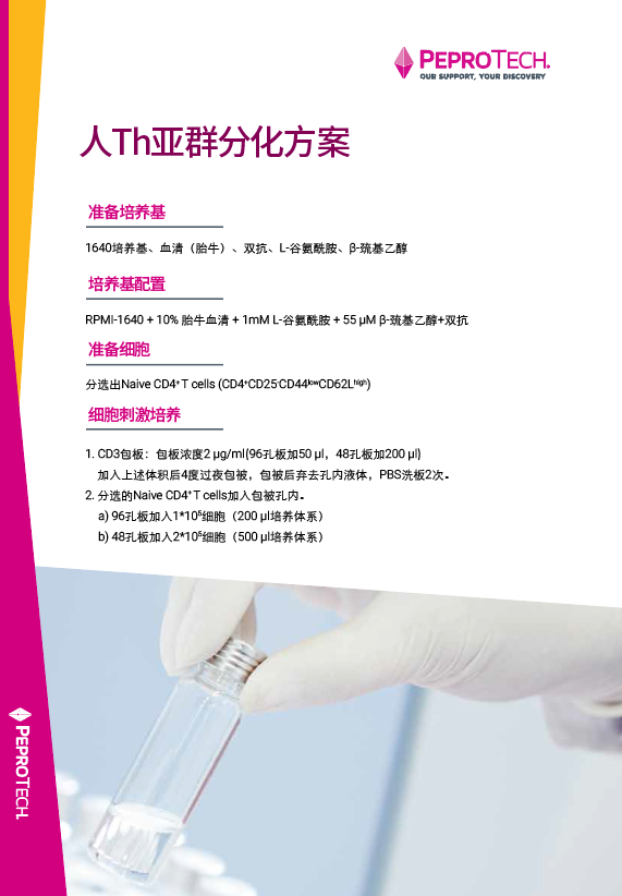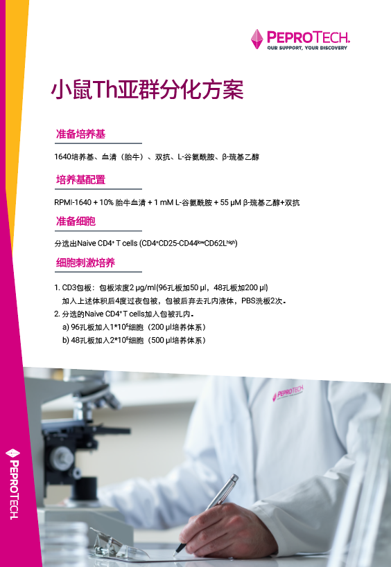 PeproTech还将提供人和小鼠T细胞增殖及亚群分化培养方案,以便您更好的进行实验操作~
