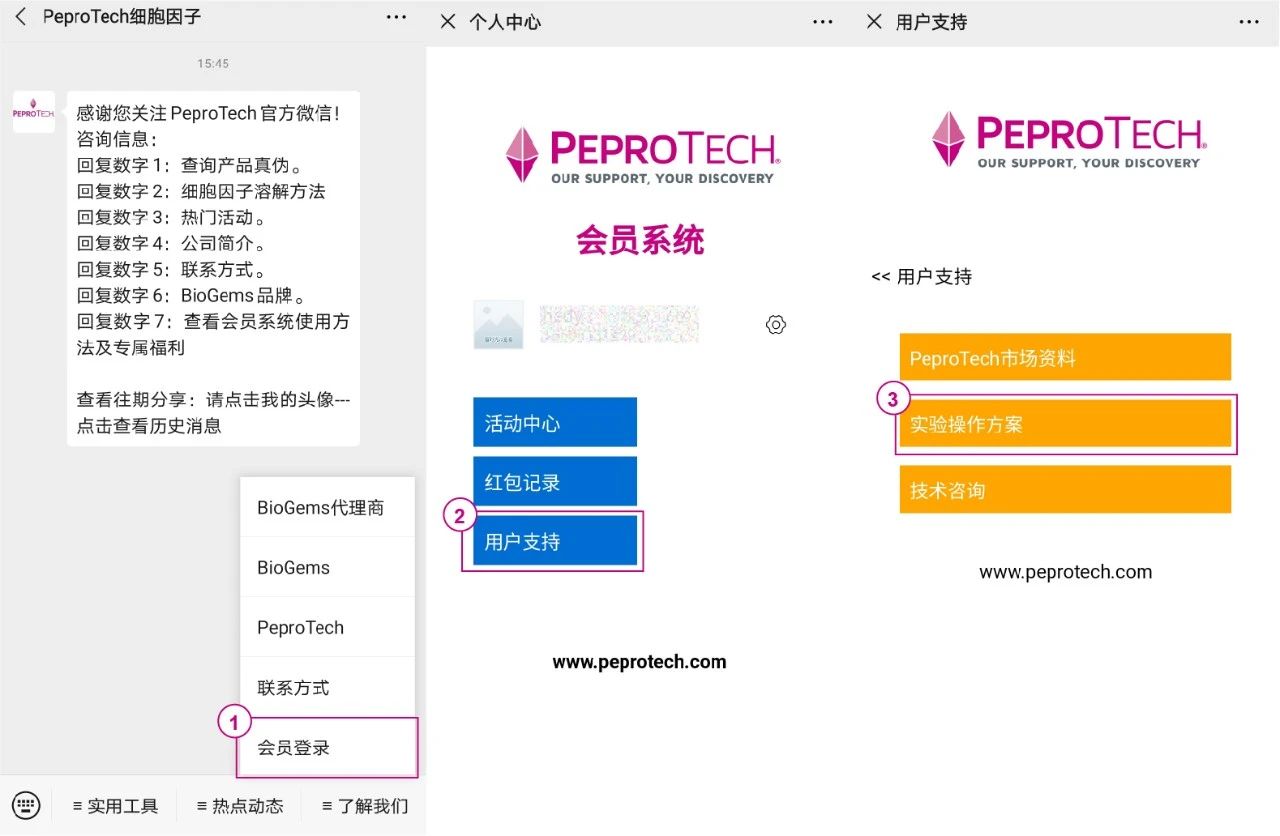 1.若您是PeproTech会员,您可以登录会员系统→ 用户支持→实验操作方案中进行下载。